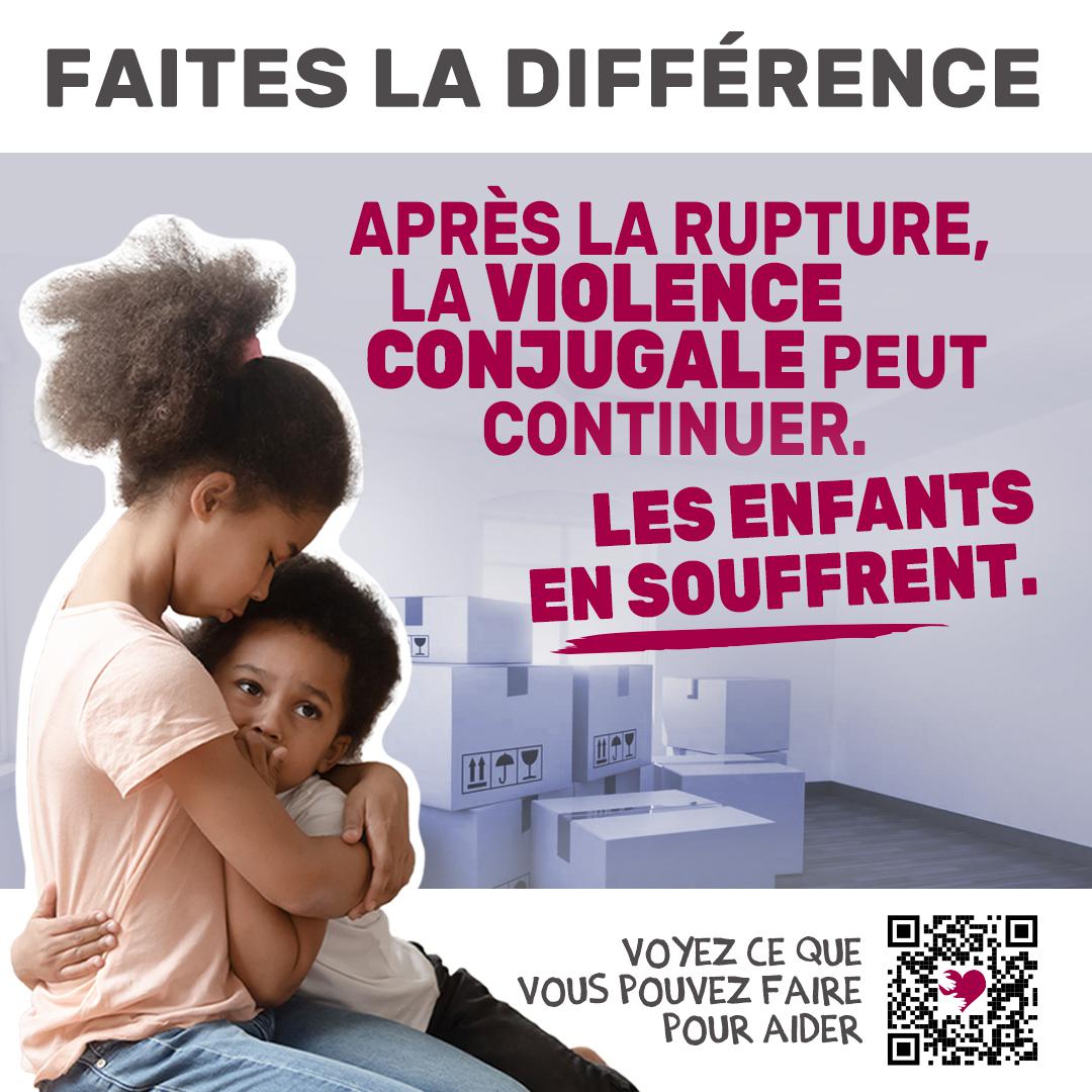 Malgré que cette problématique sociale se passe entre deux adultes, les enfants sont loin d’être épargnés par les impacts. Ils sont aux premières loges et en subissent les éclats. Le contexte les affecte sur plusieurs niveaux, ils en sont victimes et ressentent tension, terreur, insécurité et imprévisibilité.